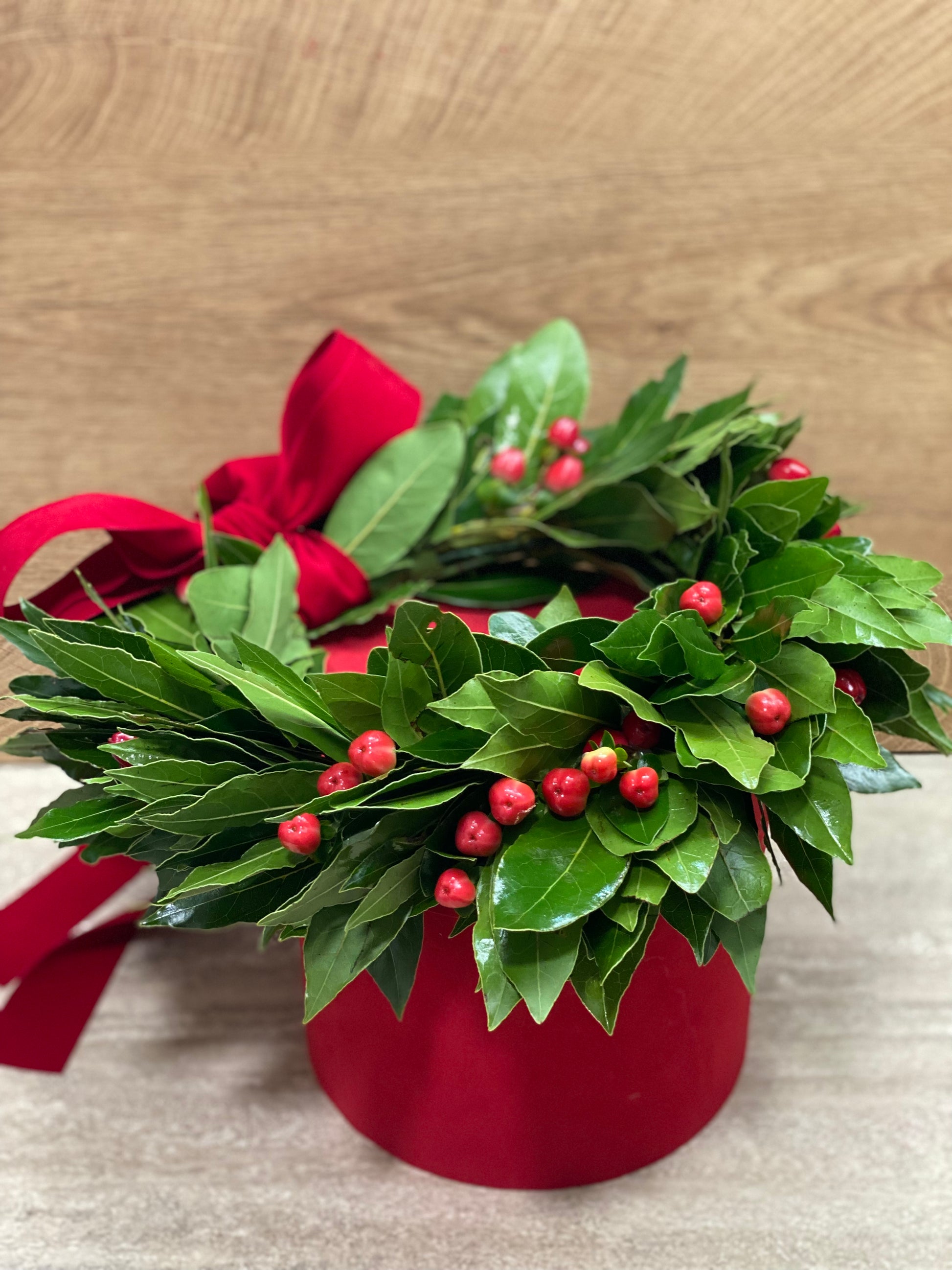 Corona Alloro con bacche di Hypericum